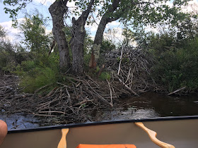 A couple of views of the active beaver lodge that is on the river. Fortunately, the Raquette is too big for them to dam, but they still use this area as a home.